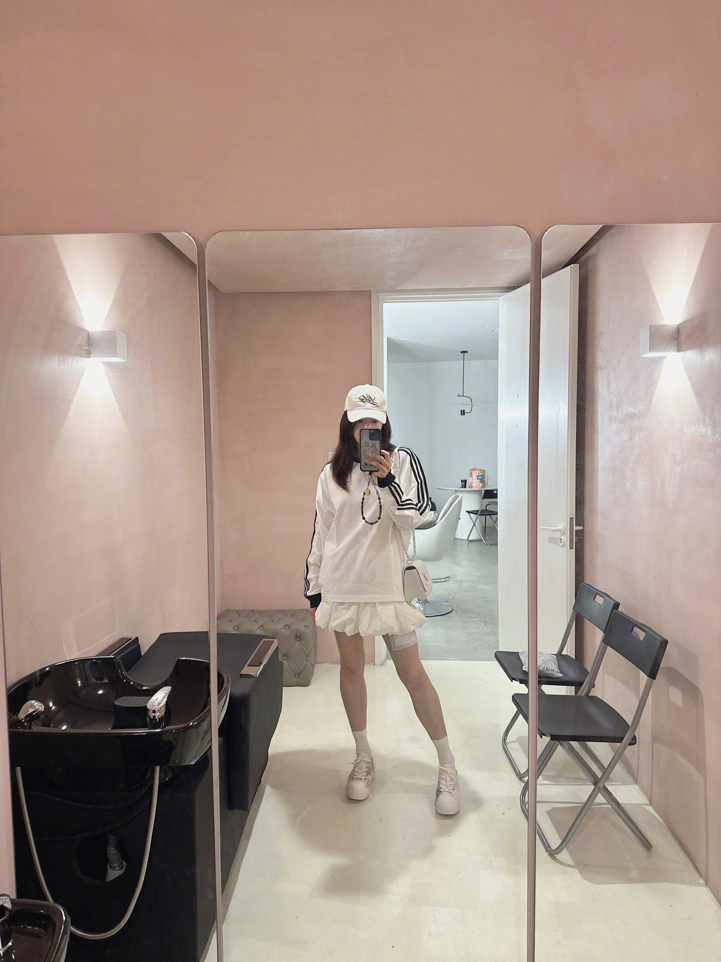 宋茜身穿短裙搭配白色袜子,整体造型青春活泼,展现出轻盈的时尚感。